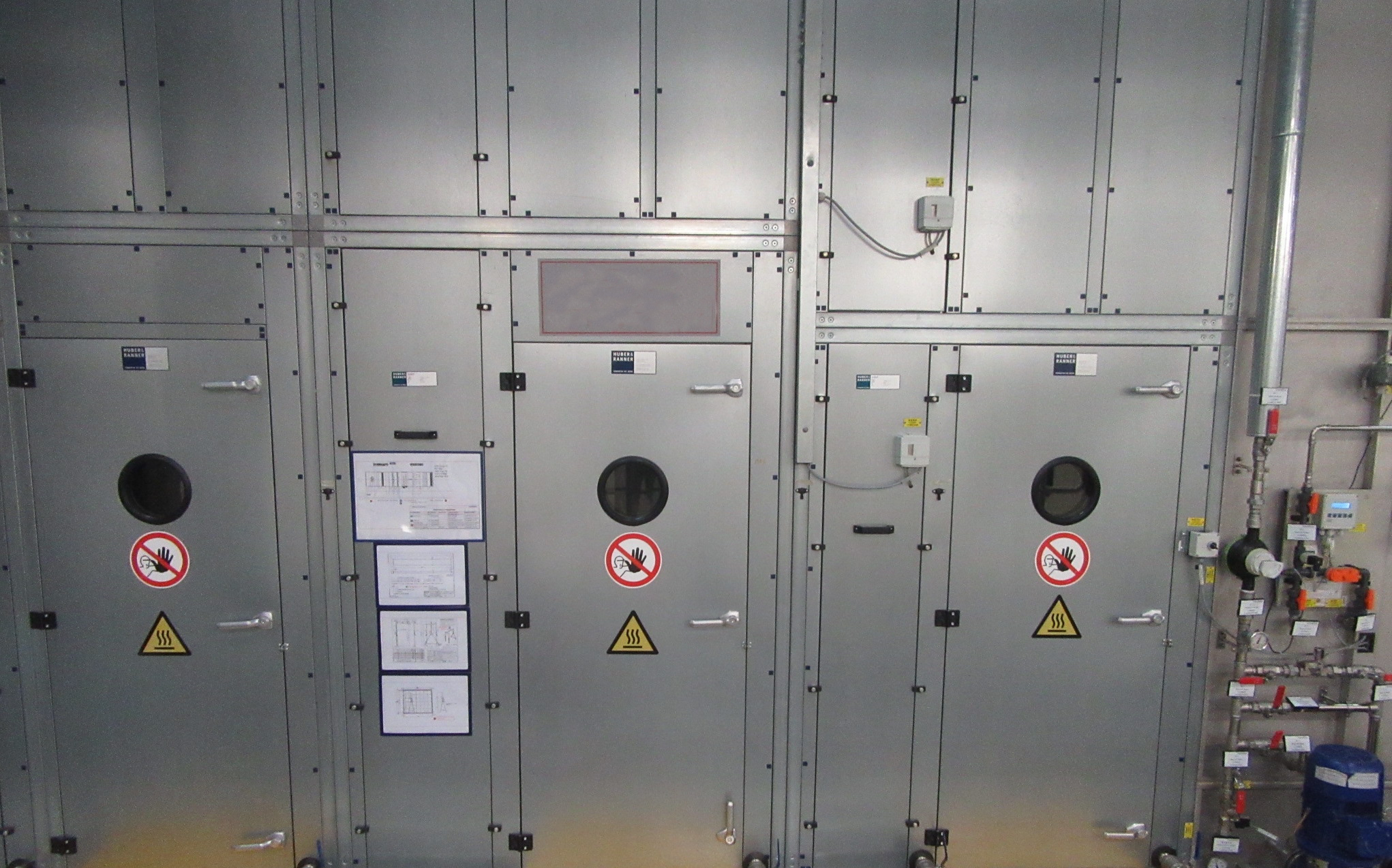 Darüber hinaus achten wir auf die Umsetzung unternehmensspezifischer Vorgaben zur Arbeitssicherheit und zum Brandschutz. Das umfasst moderne Brandmelde- und Löschanlagen, die beispielsweise auf die spezifischen Risiken von Lackieranlagen abgestimmt sind. Unter anderem integrieren wir automatische Sprinkleranlagen, die durch gezielte Wasserauslösung eine effektive Brandbekämpfung ermöglichen. Darüber hinaus setzen wir auf innovative Hochdruck-Wassernebel-Löschanlagen wie das Marioff HI-FOG-Brandschutzsystem, das durch feine Wassernebelpartikel eine schnelle Kühlung und effiziente Brandunterdrückung gewährleistet – insbesondere in Bereichen mit empfindlichen elektrischen Komponenten oder hohen Brandlasten.
